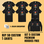 Buy 50 Custom T-Shirts And Get 5 Custom Premium Hoodies Free